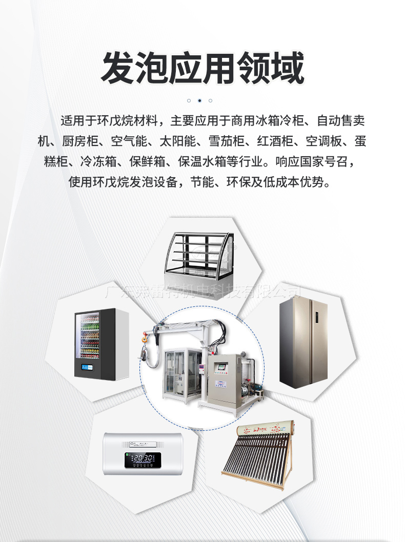 懸掛生產線比傳統擺臂式更實用:打料范圍廣、可以選擇不同大小模具操作、定位工位可操控,可以滿足冰箱、消毒柜、保溫箱等大型發泡產品進行批量生產。