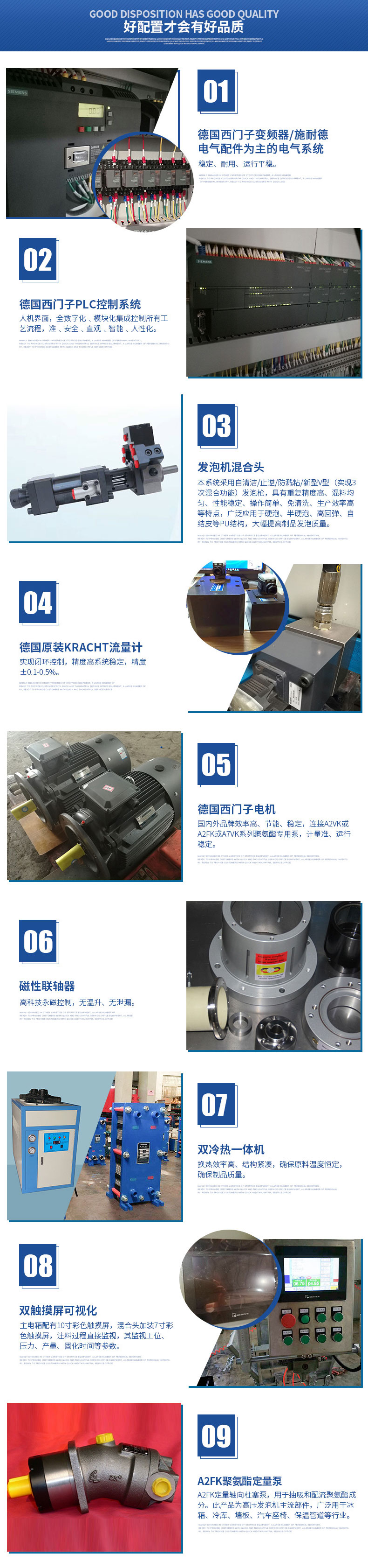 混合裝置:本系統(tǒng)采用自清潔/止逆/防濺粘/新型V型(實(shí)現(xiàn)3次混合功能)發(fā)泡槍?zhuān)Y(jié)構(gòu)美觀、操作方便。配合西門(mén)子聚氨酯專(zhuān)用泵,注射準(zhǔn),混合效果很好。