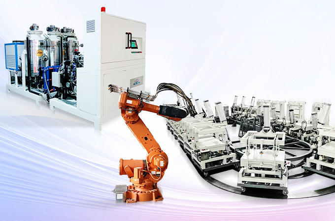 熱門關鍵詞:聚氨酯發泡機 | 發泡模具模架 | 發泡生產線 | 原料儲存預混 | 機器人自動化 | 主要配件